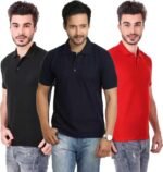Men’s Polo Neck Short Sleeve Casual Tshirt Combo of Dark Blue, Red, Black colors (Pack of 3)