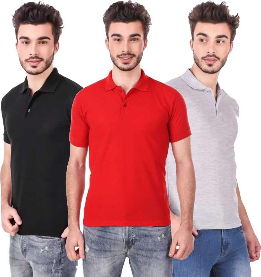 Men’s Polo Neck Short Sleeve Casual Tshirt Combo of Red, Black, Grey colors (Pack of 3)