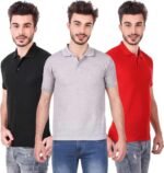 Men’s Polo Neck Short Sleeve Casual Tshirt Combo of Red, Black, Grey colors (Pack of 3)