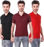 Men’s Polo Neck Short Sleeve Casual Tshirt Combo of Red, Maroon, Black colors (Pack of 3)
